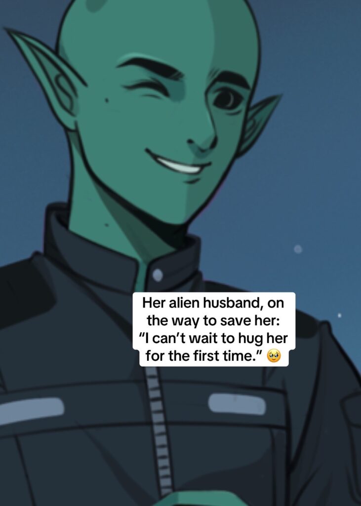 Almost instantly, I was in Haven’s room on the spaceship. It had a deep black interior, with white swirls outlining the edges of doors and rooms like a strange crown molding. His bed was a heap of shaped moss, always cool to the touch. He added extra blankets at my request, one placed under us like a sheet and the other on top. He used to sleep on the bare moss, but he got used to how we laid down together, so our blankets were always on his bed when I arrived. I rarely saw the navigation systems of his ship—Haven wasn’t often in that room. Maybe my lack of understanding of space travel kept me from scrutinizing the details.